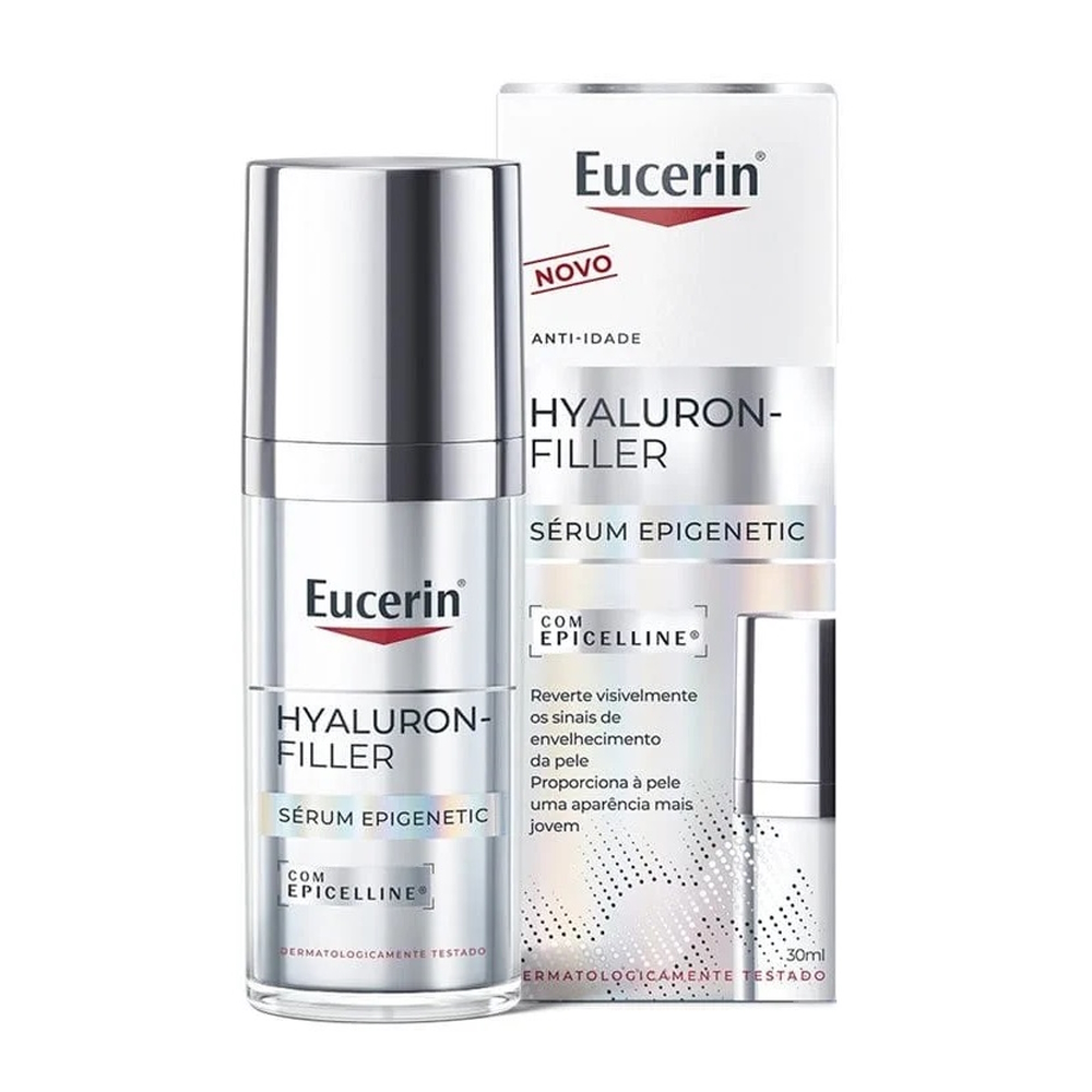🔬 Desperte a juventude da sua pele com o Eucerin Hyaluron-Filler Epigenetic Serum. Sua fórmula avançada com Ácido Hialurônico de alto e baixo peso molecular, Glycine Saponin e Epicelline - um ativo patenteado epigenético inovador - ajuda a reativar os genes da juventude das células da pele, preenchendo rugas profundas e proporcionando uma aparência mais jovem e radiante.