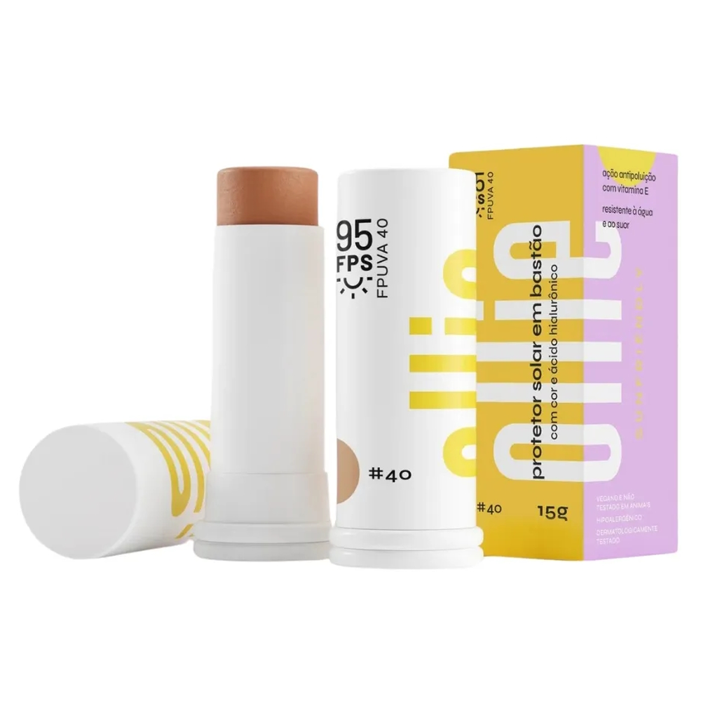 ✨ Proteção solar alta e prática com o Ollie Bastão FPS95 Cor 40. Ideal para o dia a dia, oferece FPS 95 e FPUVA 40 para proteger contra raios UVA/UVB.