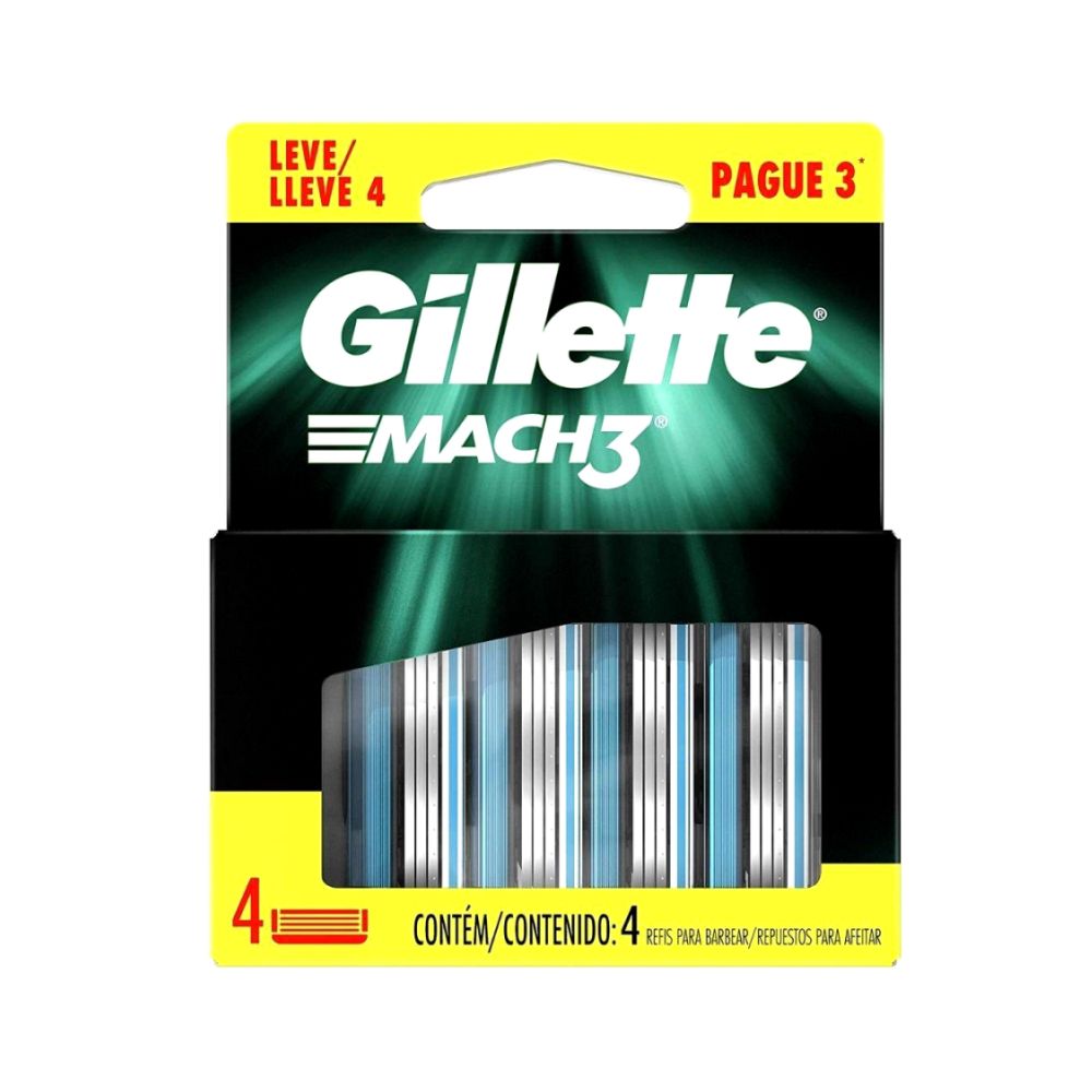 🪒 Carga Para Aparelho de Barbear Gillette Mach3 Regular Refil Com 4 Cartuchos 🪒
